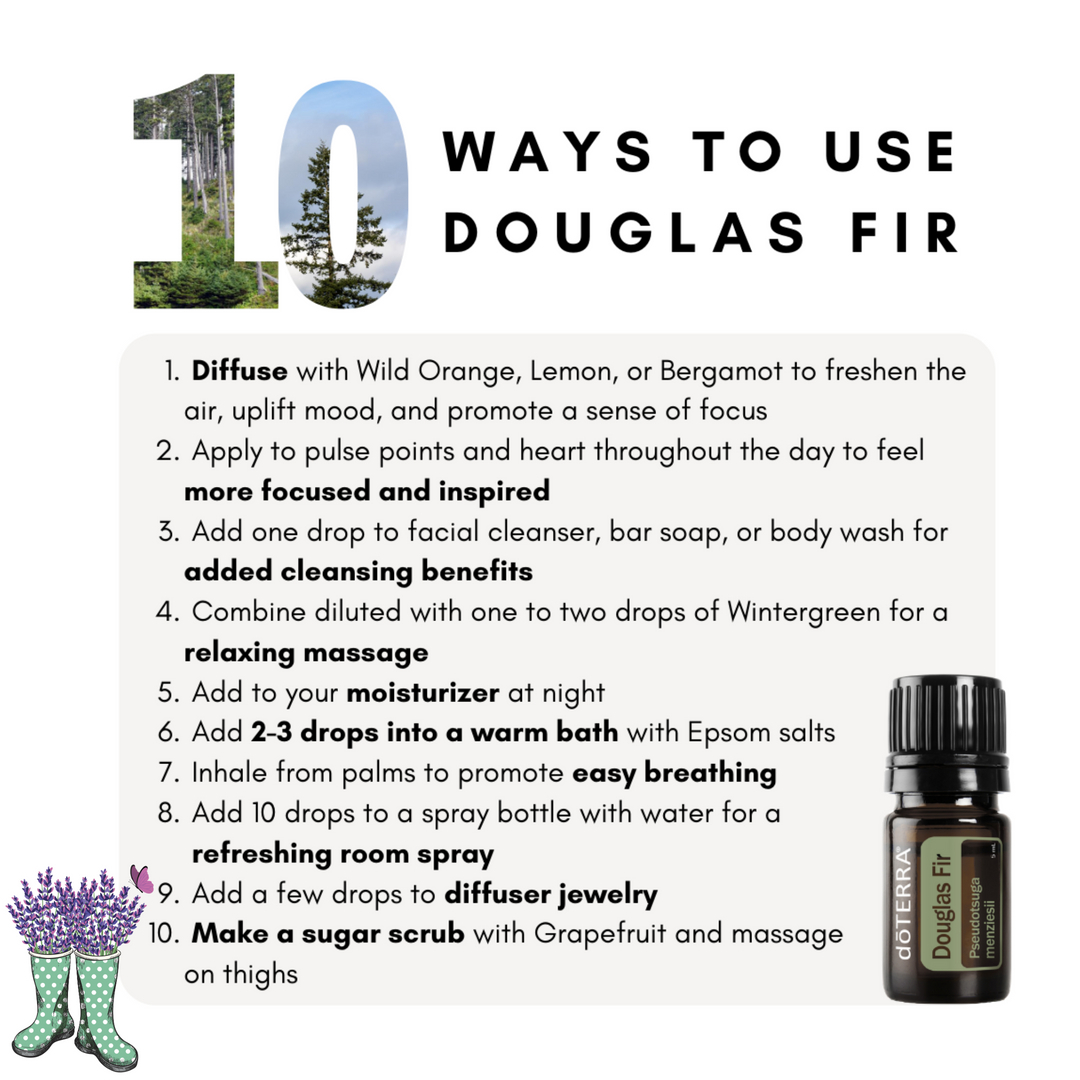 For an invigorating diffuser blend that will help uplift and focus try the one below or simply try inhaling Douglas Fir from the bottle.
