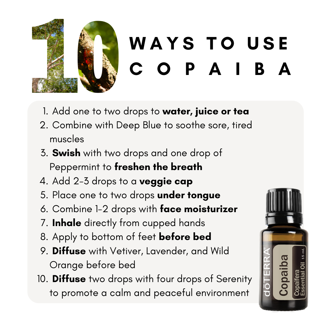 Copaiba oil works throughout the body where the ECS is present and not binding to CB1 receptors means no psychoactive effects and so can be used safely in a whole heap of situations. In correct use it has no side effects and if using doTerra essential oil it is safe to be ingested which confers so many benefits - from musculoskeletal and emotional support to the rest of the body including liver and urinary system support too. The great thing about the doTerra Copaiba oil is because of the Certified Pure Tested Grade (CPTG) guarantee we know that it is pure and you can actually got to www.sourcetoyou.com pop in the batch number found on the bottom of the bottle and see for yourself exactly what is contained within your bottle.