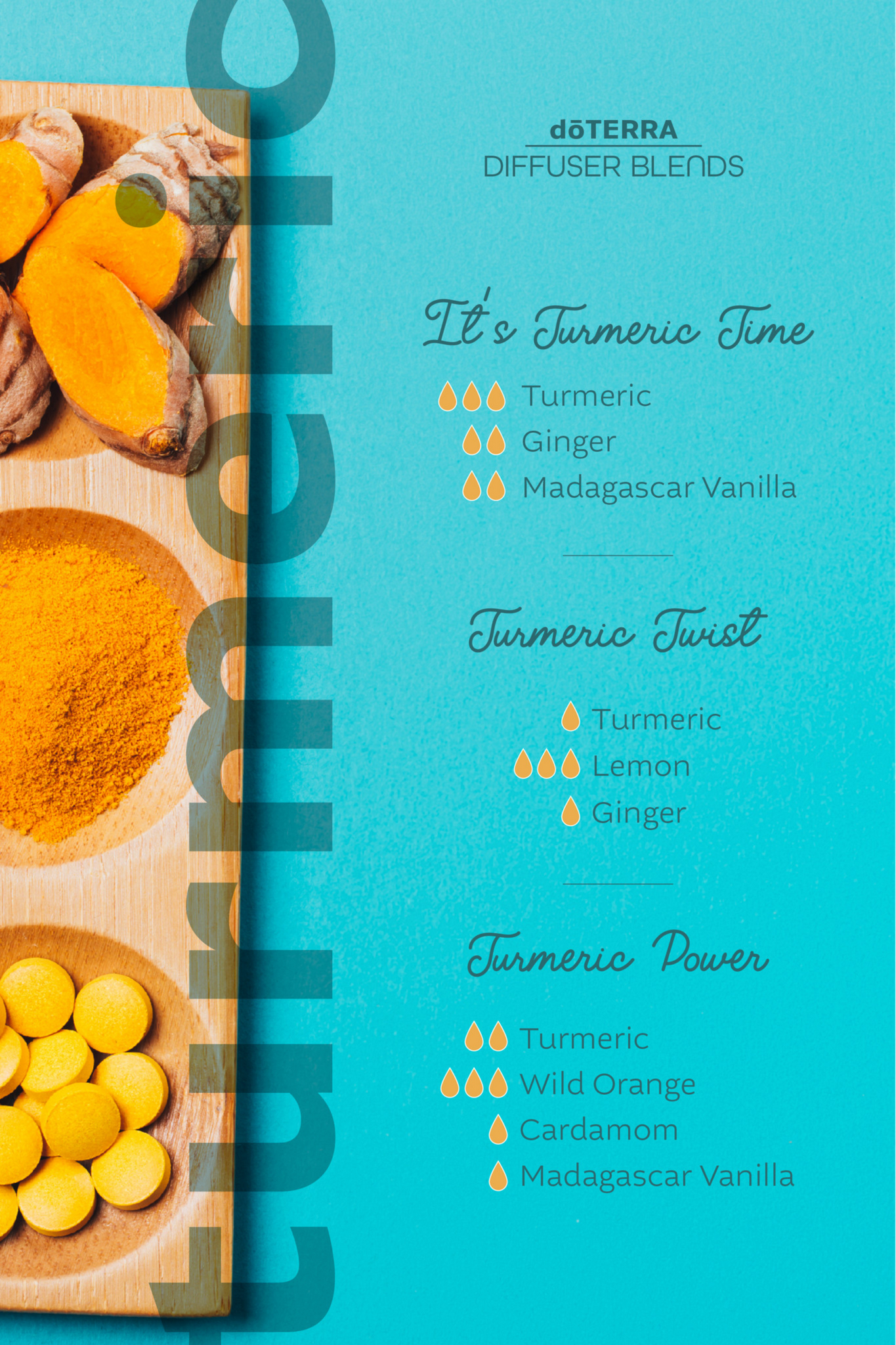 - Diffuse Turmeric essential oil or put a drop or two into your hand and inhale to promote feelings of positivity and to improve mood.