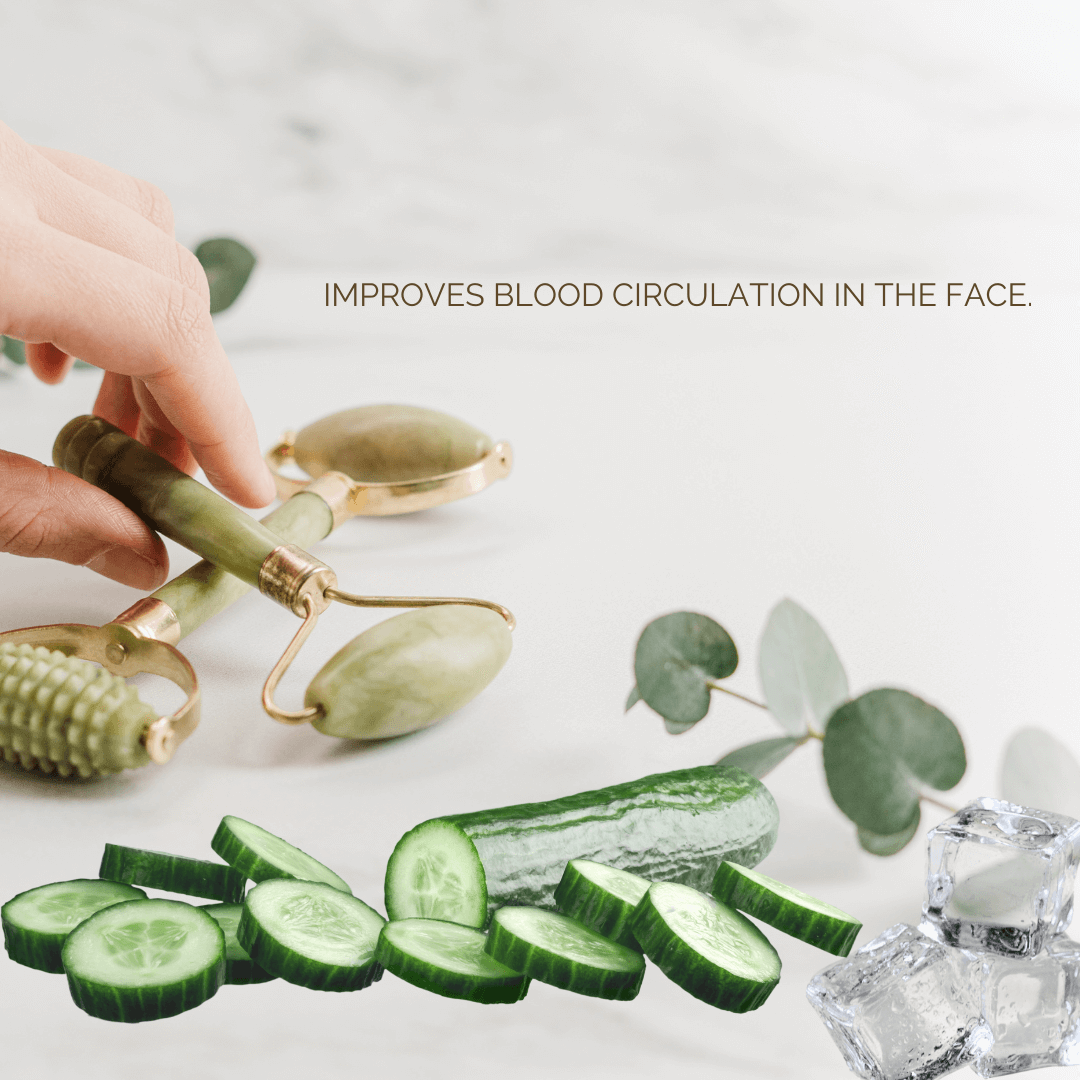 Don’t have an ice roller just yet? Grab a wax cucumber, peel off 2 inches on one end, wrap in wax paper or foil, and place in your freezer. Massage your face. Peel as needed to freshen up your cucumber and refreeze.