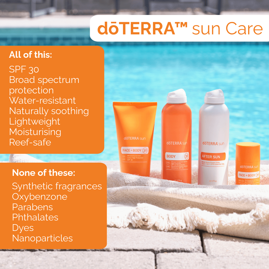 doTERRA's suncare range offers a superior, health-conscious alternative to traditional sunscreens, marrying the best of mineral sunscreens' benefits with the brand's holistic approach to wellness. Embrace the sun with confidence, knowing your skin is shielded and nurtured by the power of nature, courtesy of doTERRA.