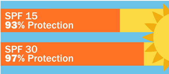 Did you know that SPF 15 actually provides the biggest jump in protection compared to no sunscreen. While not wearing sunscreen offers 0% protection (obviously), SPF 15 offers approximately 93% protection when used properly. SPF 30 jumps to about 97% protection with proper use. After that, the protection you get from using a higher SPF is negligible and no sunscreen can offer 100% protection, but even SPF 15 gets you close! The difference between a SPF 40 is you block out 97.5% of UVB radiation and SPF 50 blocks 98% so as you can see the higher SPF is negligible.