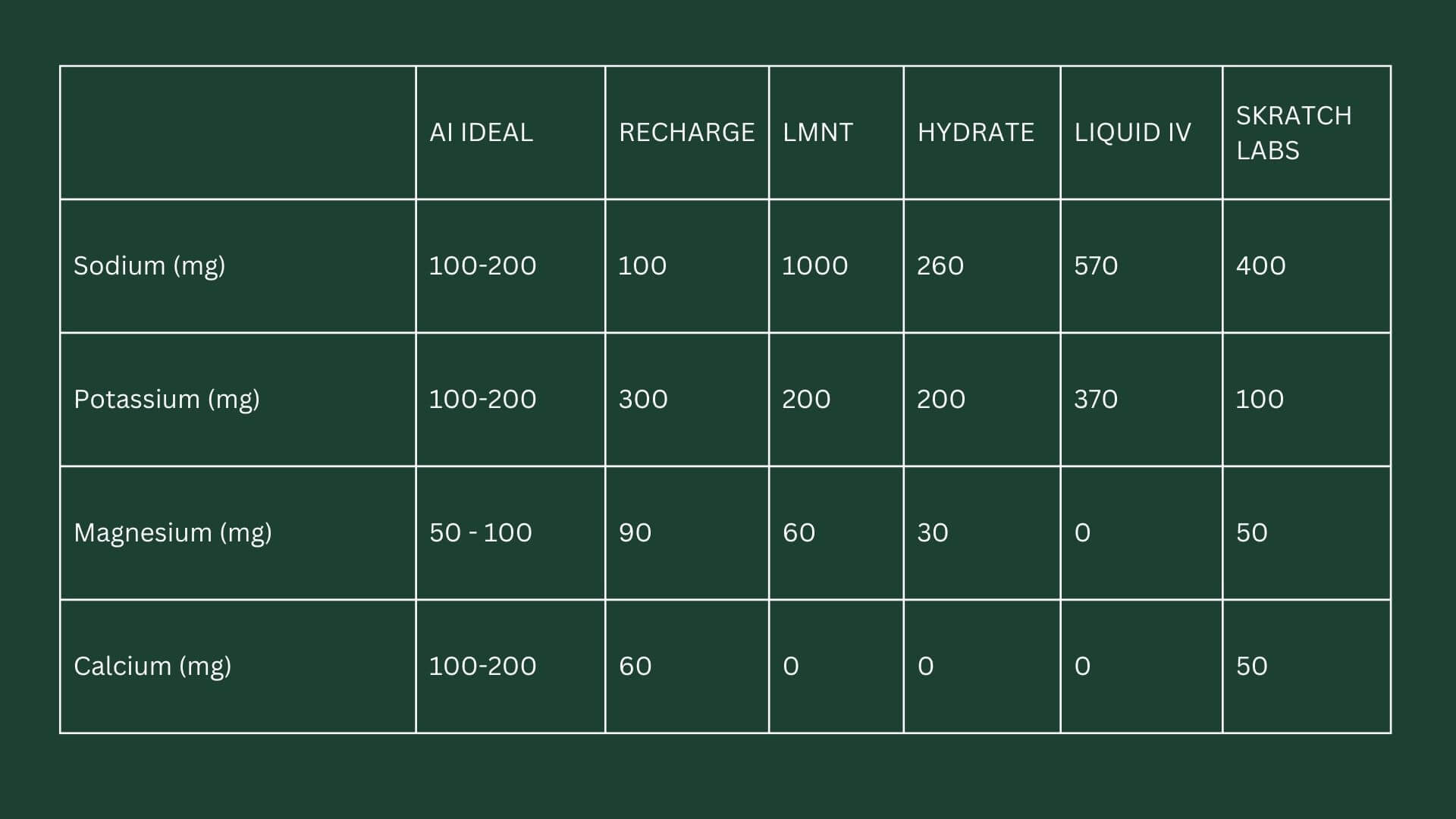 This is a general guide and the optimal levels of electrolytes for you may depend on your individual needs.