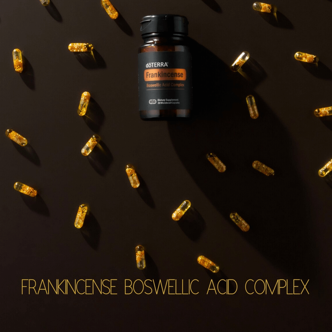doTERRA's Frankincense Capsules a.k.a Boswellic Acid Complex, typically combining both the frankincense essential oil and a standardized extract of frankincense resin. By standardizing the extract to a high concentration of AKBA (e.g., 60%), these capsules aim to deliver a consistent and potent amount of the key boswellic acids, maximizing their intended benefits.