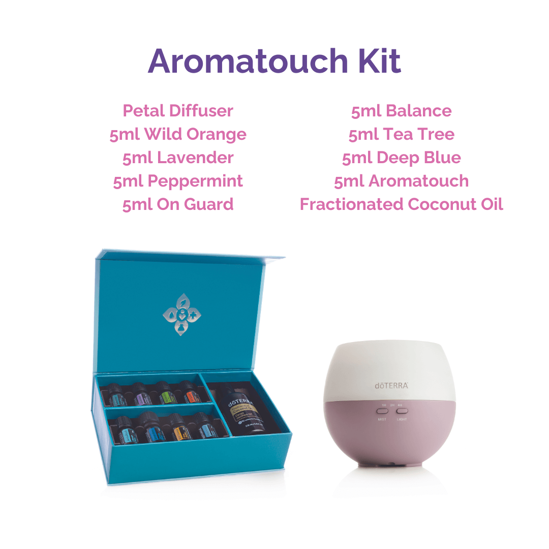 The oils in the AromaTouch Kit are carefully selected for their ability to promote relaxation, reduce stress, and provide a soothing and comforting effect on the body. They include Lavender, Melaleuca, On Guard, AromaTouch, Deep Blue, Wild Orange, Peppermint, and Balance.