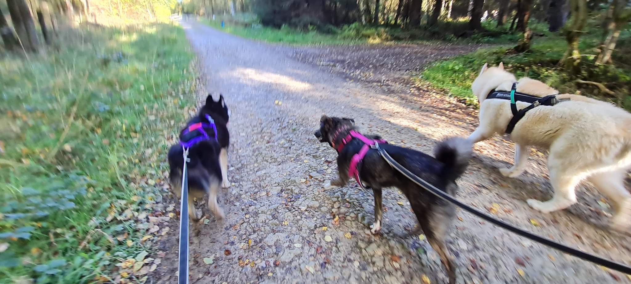 Taking my blind dog Inka out in the afternoon for a canicross run with our pals from