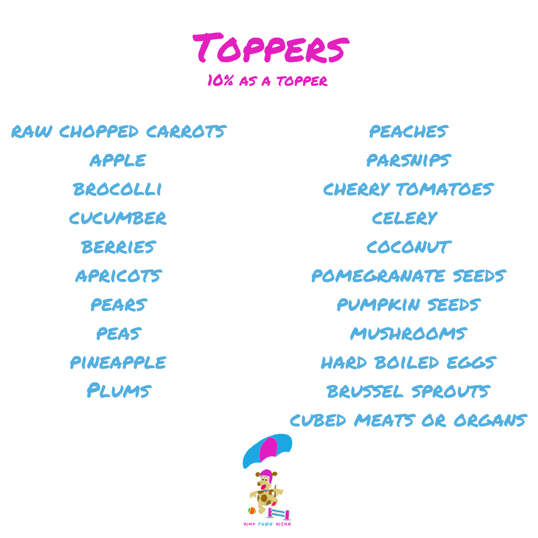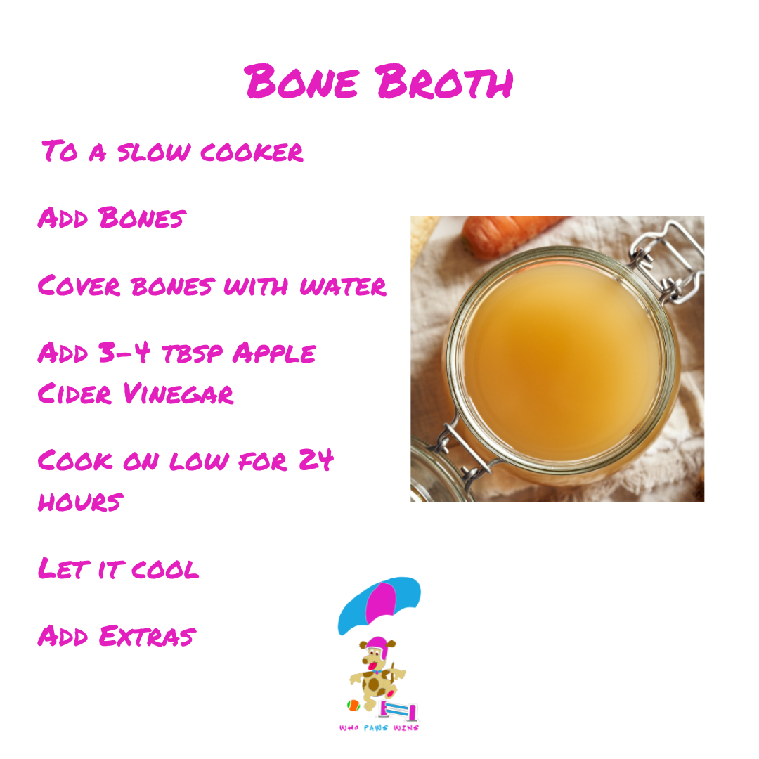 Also bone broth is another great add in and full of goodness that dogs love and particularly awesome for the older dogs or sports dogs.