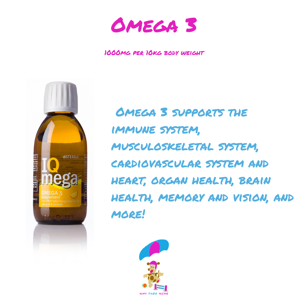 Other supplements include a good omega 3 oil I love the doTerra IQ mega for my gang but otherwise go for Krill or Atlantic Wild Salmon - never farmed. Plant based omega 3 is not as bioavailable for dogs and I have really noticed the difference since I swapped my dogs over.