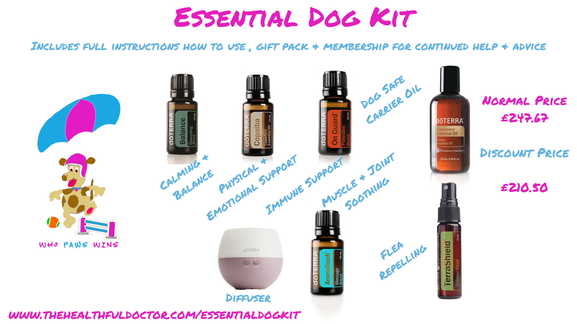This fabulous kit comes with a bespoke plan so you know to use it for your dogs as well as continued support in my membership group as well as access to a variety of courses including my Essential Oils For Pets Course and various courses for you too! Not to mention eBooks and recipes to ensure you and your dog get the most out of the oils.
