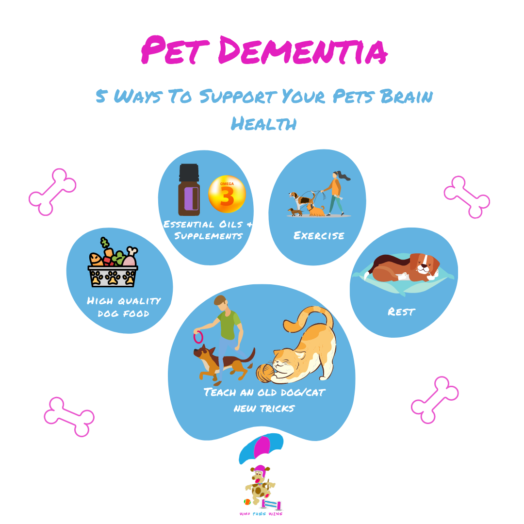 Brain derived neurotrophic factor is a key molecule in the maintenance of memory and by ensuring that you feed antioxidant fortified food helps support neuroplasticity and maintains good cognition Supplements and essential oils can be of great benefit as many are potent in antioxidants and my favourites are DDR Prime and the Deep Blue Polyphenols. Also don’t forget to include omega 3 as this is crucial for good brain health too - for dogs 1000mg per 10kg of body weight.