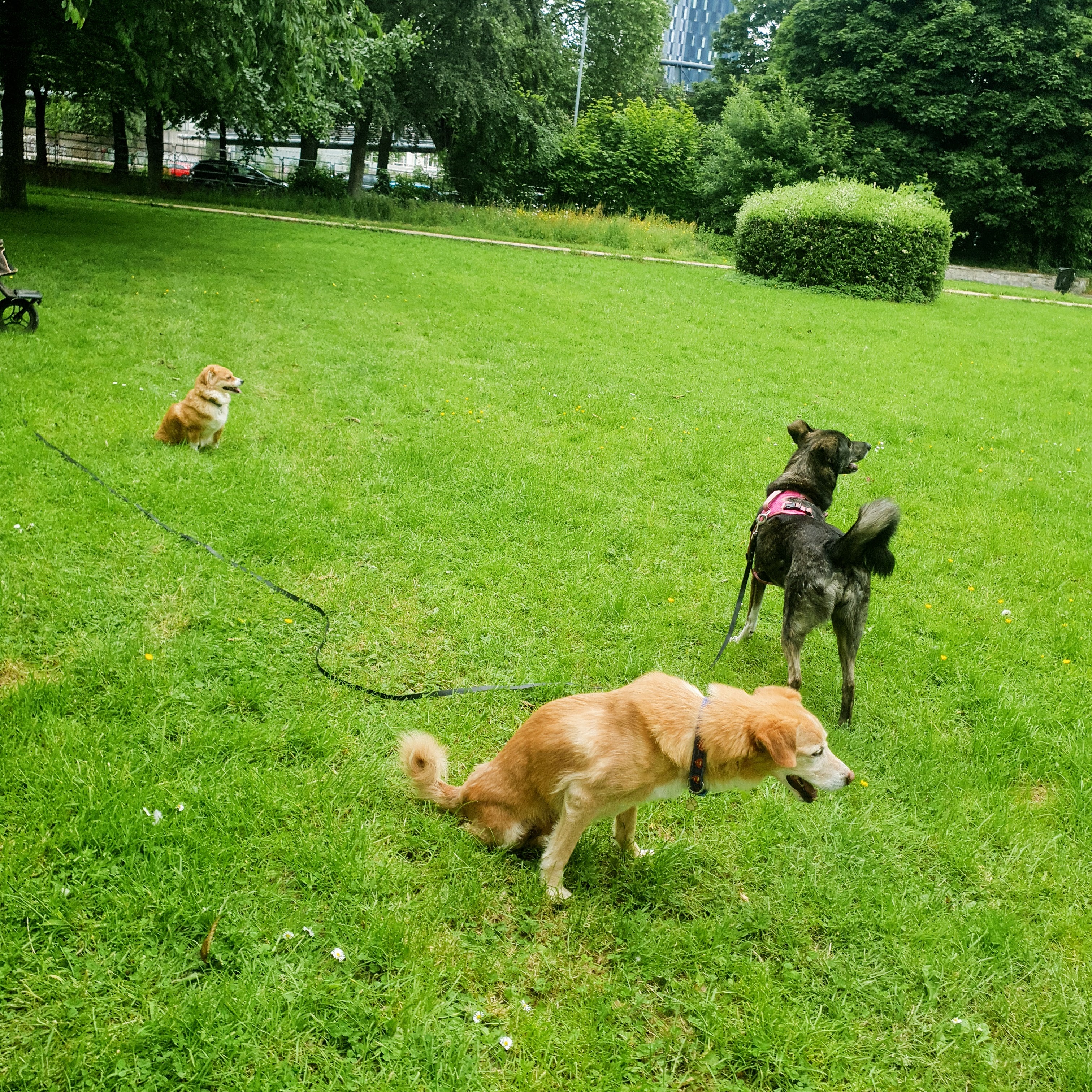 A month or so ago I did a video of us enjoying our time in the park - there were people playing basketball, sirens on the Mancunian Way, someone playing football against the fence - the constant thud, thud, thud not worrying Inka at all as she sniffed the grass and rolled around in it. This was a dream come true and it is so lovely to see her enjoy things. This has gone beyond just this area. I hire a secure field twice a week and for a long time - dogs in the surrounding fields could be difficult for Inka and she would react - but this same approach for the park now has chilled in the field and even going up to the fence and sniffing dogs on the other side!