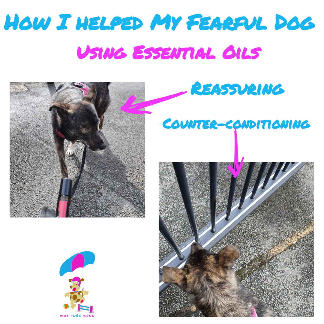 I started changing the way I approached it. Our walks in the car park became about getting Inka comfortable with traffic noise. I worked at getting her used to the clanging gate and comfortable around the metal (metal is not something she is keen on), I used essential oils to support both these activities and her favourite oil - Rose at the time I smeared on the gate and on my legs as we would walk towards it. I literally did 5 mins a day.