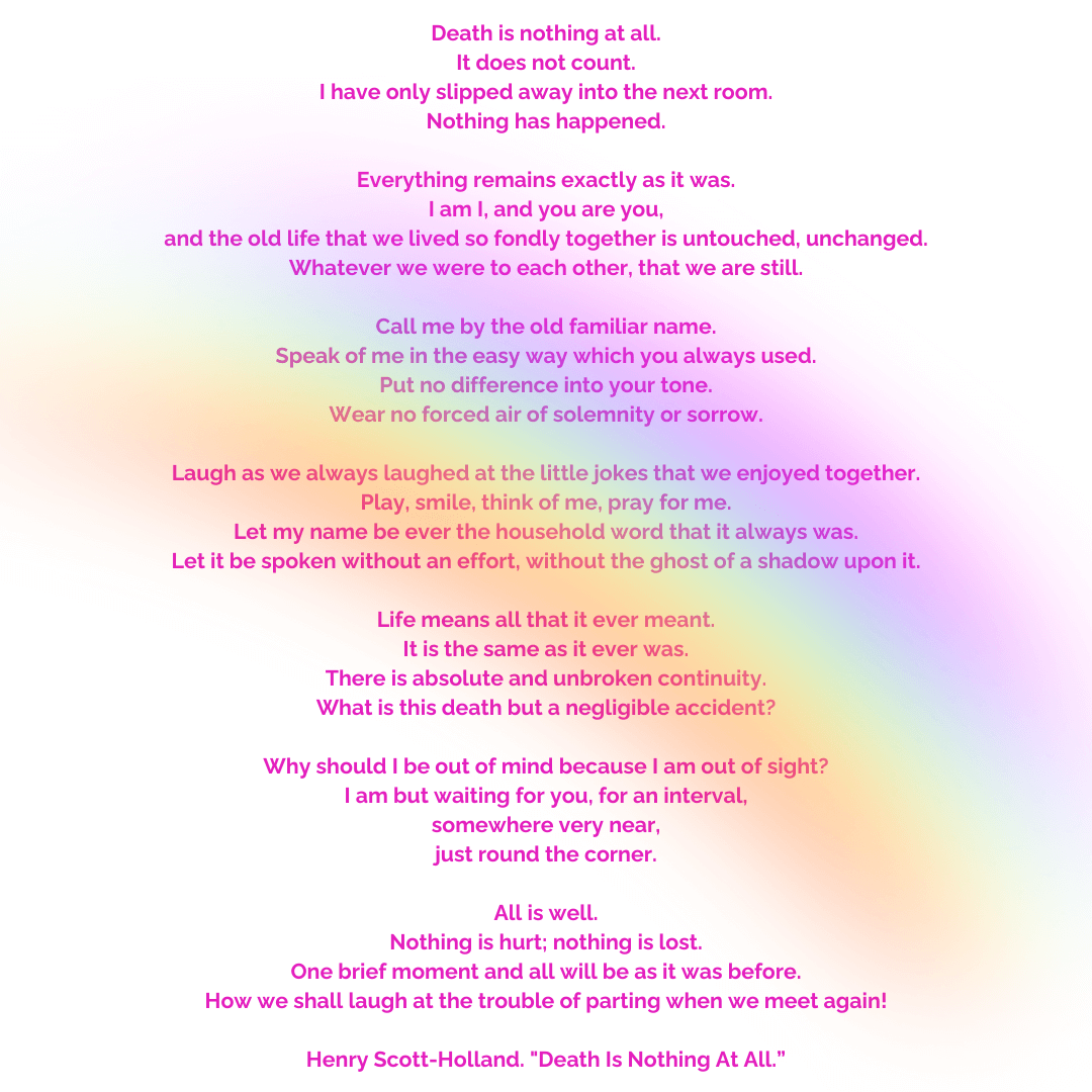 A lovely book that I feel is so useful to understand the process of death is Dying To Be Me - by Anita Moorjiani it is about a near death experience and it, I feel it can provide a lot of comfort - albeit human related it helped me very much with the sudden loss of my dog Treacle who died suddenly in 2014 after a 3 day illness - Alabama Rot - learn more about this devastating illness