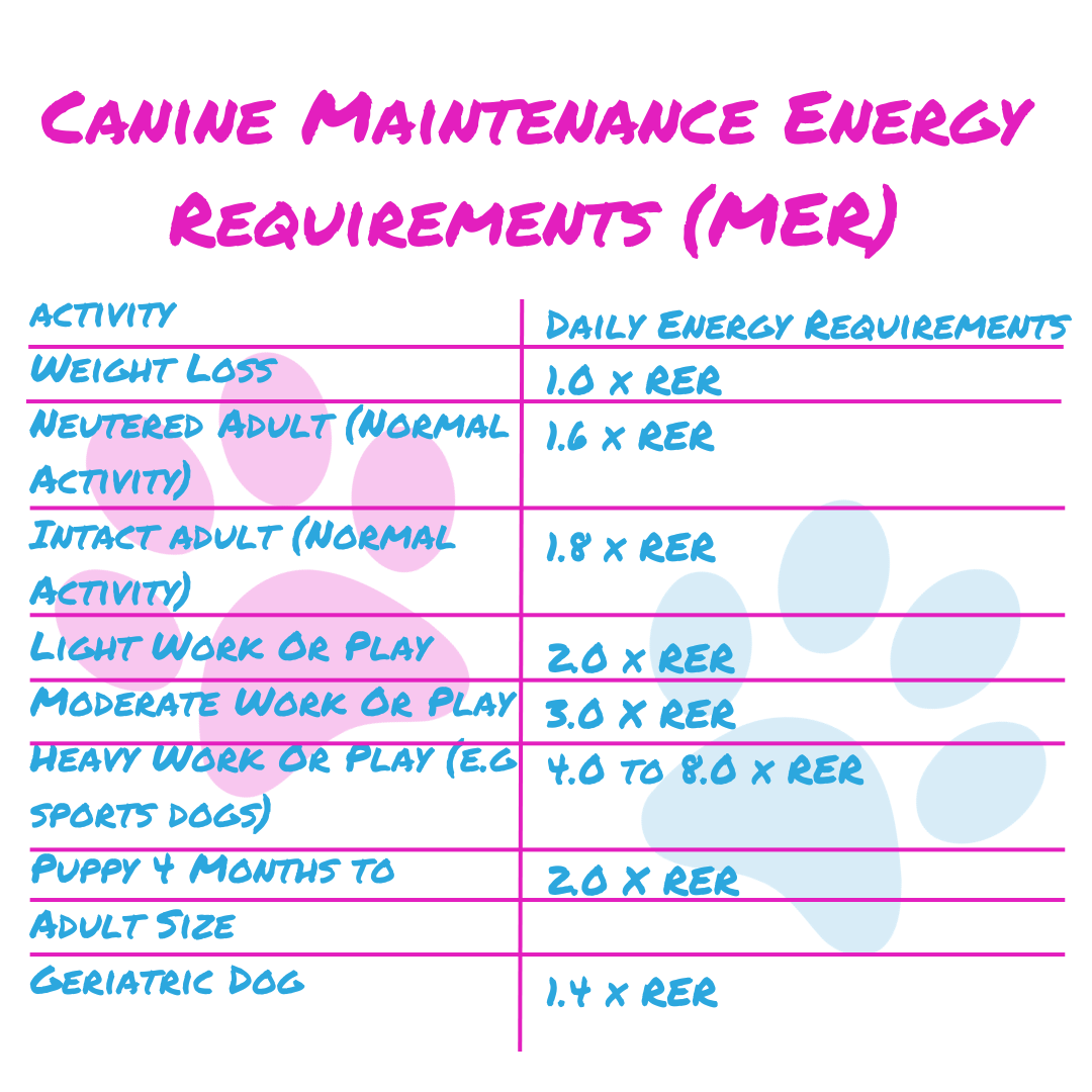 This calculation is your dog's resting energy requirement while they are losing weight however once they reach their ideal weight you will need two feed them their maintenance energy requirement and this is based on a variety of different factors.