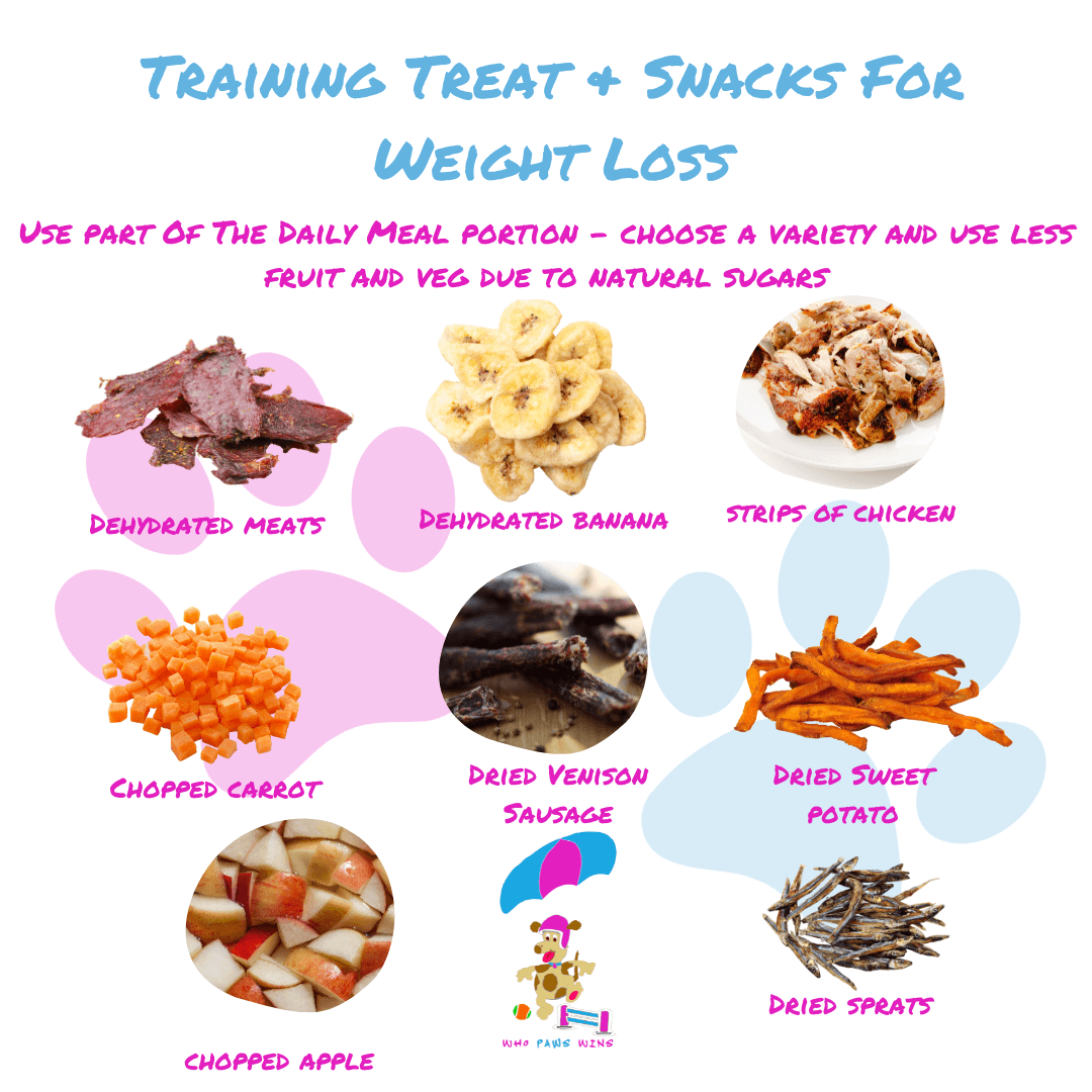 A quick word about treats for training and snacks - take it out of your dog’s daily allowance - opt for high quality items such as dehydrated meats (cheaper with your own dehydrator), dried venison sausage, veniso pate for dogs, fruits and veg but they are high in sugar so less of those.