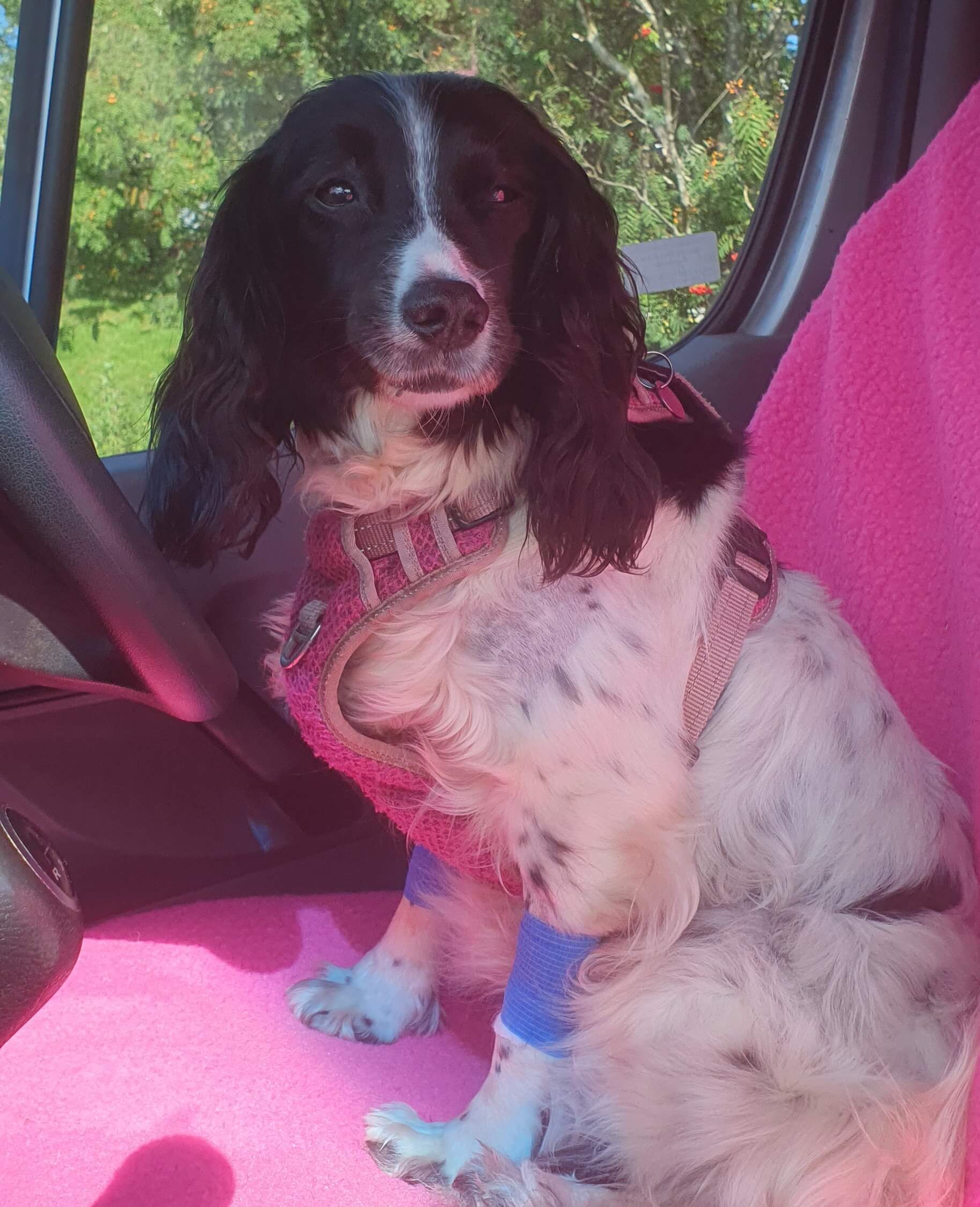 I was able to take her home the next day which was actually fantastic and usually Evie needs to be carried out of the vets because she so loves being there and all the attention but on this particular occasion enjoying the cuddles from the staff as we headed to the front door I felt sure I would need to pick her up but she was more than ready to charge to the van! Popped straight on the drivers seat - where she likes to snooze when we are camping!