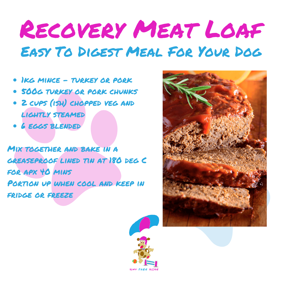 I made quite a large batch and the veg I used was aubergine, courgette and sweet potato. It was lovely to be able to take that in for her and then literally hand feed her slowly. She absolutely loved it. Evie is raw fed and a lot of vets won’t let you take that in - which is fine as in an ill dog raw is going to be harder for your dog to cope with so this cooked meatloaf if perfect.