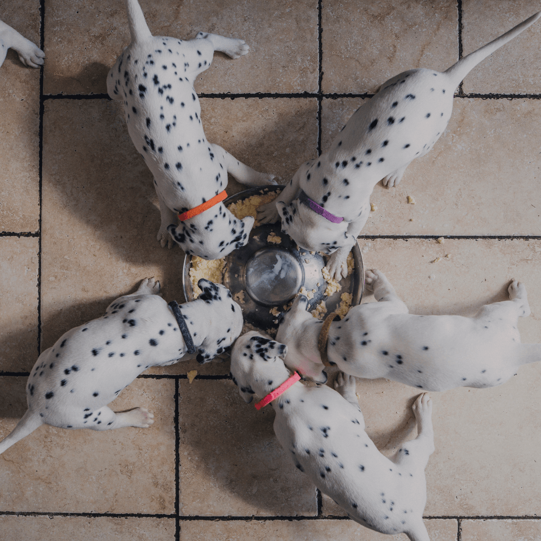 Feeding methods in early puppy life may also influence resource guarding so there are pros and cons with this such as separate bowls helps monitor food intake but the con is that they may not learn how to share resources and cope with competition.