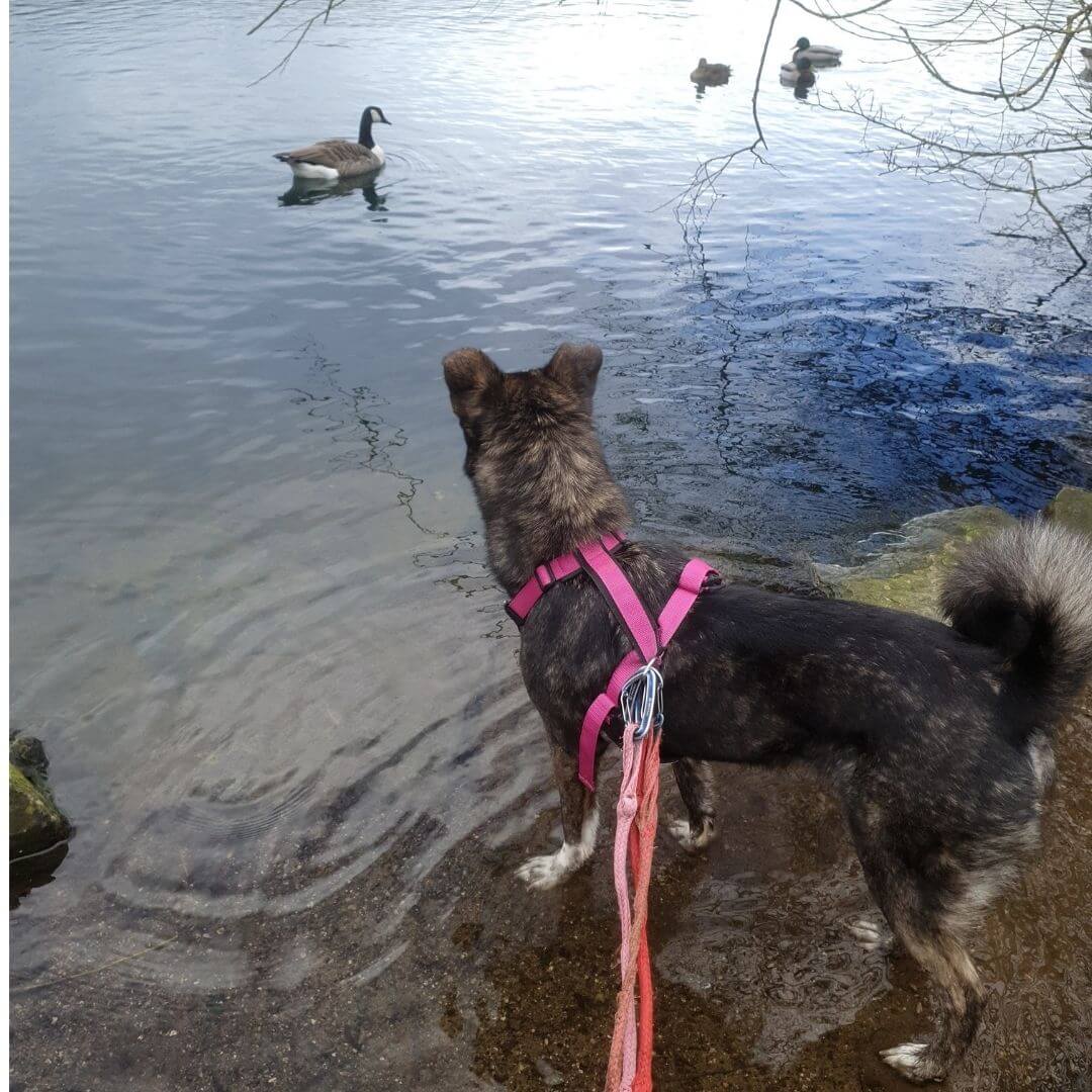 Inka has a very high prey-drive but using this technique means we can enjoy the Water Park - she sniffs and turns back to me. The sniffing is the joy that produces the dopamine rush and she gets a reward when turns back of being able to "stalk" again.