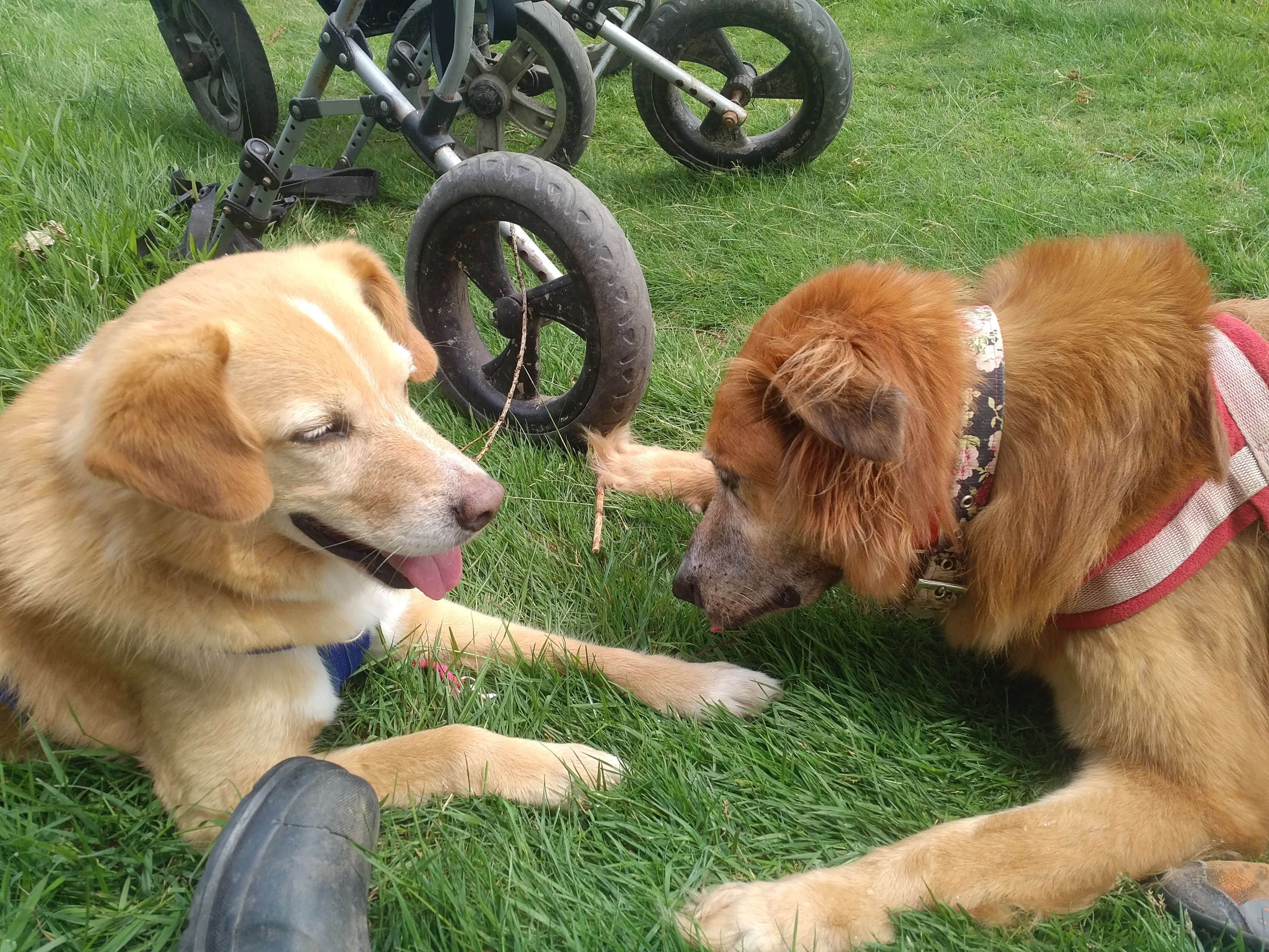 Recently, Maz faced his toughest battle. Now aged about 14 and having been with me almost 10 years. He was progressing well on his wheels when suddenly just before I went to work, he suffered bloat - recognising the signs early I got him to my vets within 30 mins - a tense 2 hours followed with the relief that he had made it through.