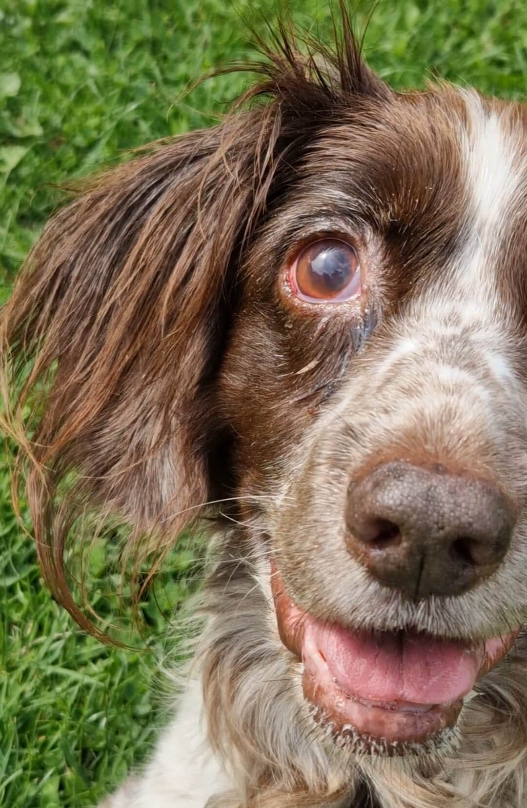 We popped along to our appointment and after an examination where she showed no sign of pain, no ulcers and apart from the cloudy pupil and some reduced vision nil else the conclusion was not sure but lets use some antibiotic eye ointment and pain relief and see how she is which I was happy with. Over the next few days she remained the same with first thing in the morning the eye appearing better. We had a nice trip to the beach and she was her normal self. But after 4 days with no improvement I requested a referral to the ophthalmology vets.