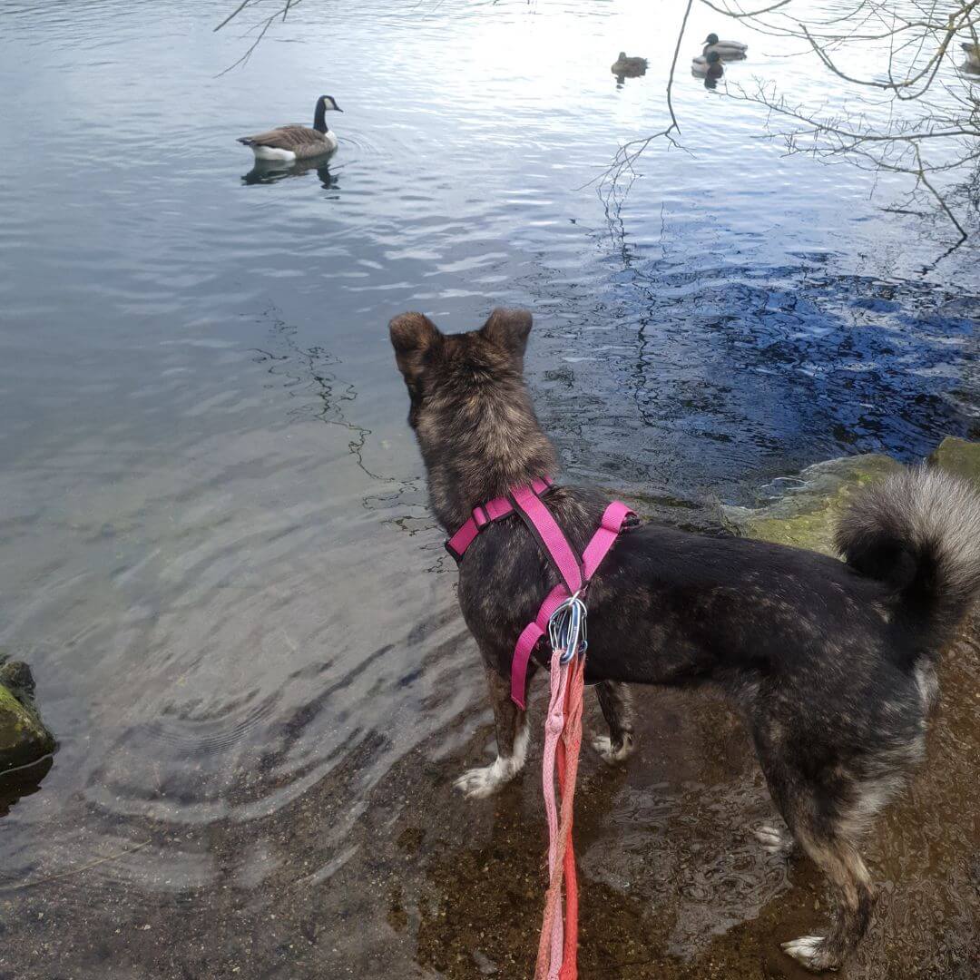 Inka has a very high preydrive but using positive reinforcement walking around waterfowl is no problem at all